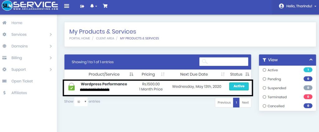 Now Click on the SERVICES. Then you will see your active services.