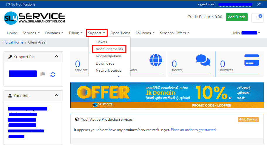 The Announcements section in your client area provides important updates from your hosting provider, such as scheduled maintenance, pricing changes, and new services. This section helps you stay informed about any events that might impact your services. Here’s a guide to understanding and navigating the Announcements section: