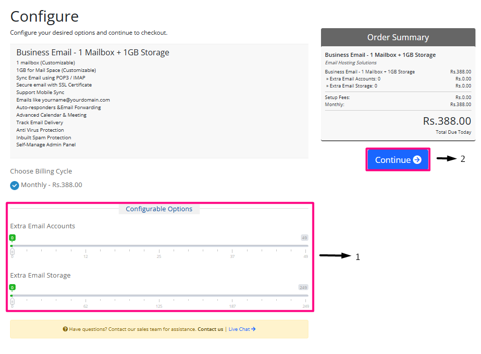 - If you want to register business email with a new domain, please choose Option 1 and enter the domain name to continue.
