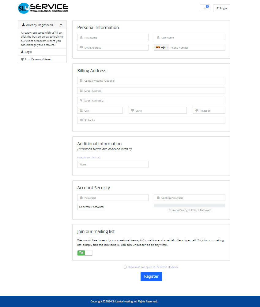1. How to Create an Account on Sri Lanka Hosting Client Area: