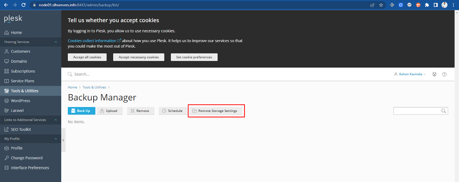Step 2: Go to Tools & Utilities -> Backup Manager -> Remote Storage Settings