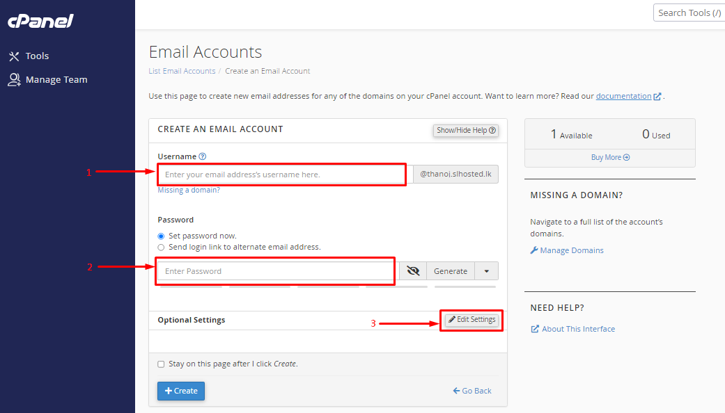 Step 3: Click the Create button and proceed to the Create an Email Account section