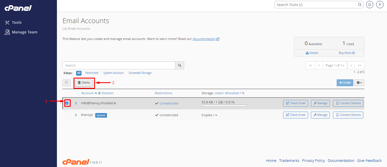 Step 2: After selecting correctly, click the Delete button and delete the account.