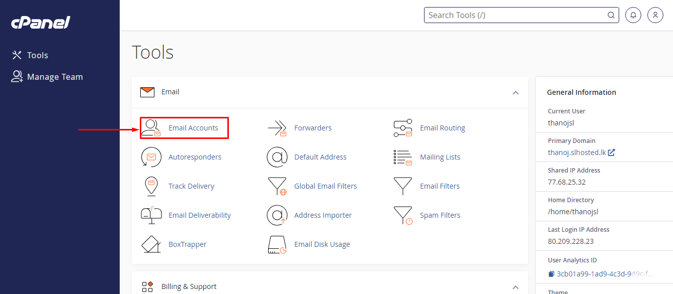 Note: After creating an email account, to obtain email configuration details, you need to log in to your webmail account, where you will find the email configuration details email