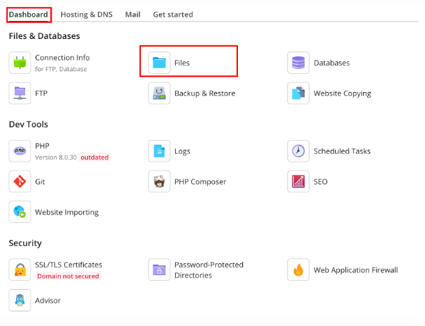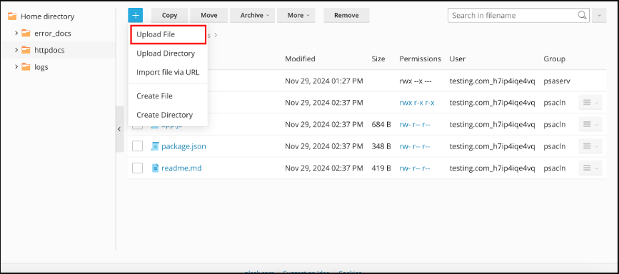 Tip: If your application is hosted on GitHub, use the Git option in Plesk to clone it directly.