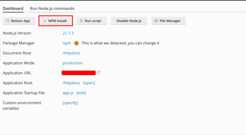 - Click the NPM Install button to automatically download and install all required dependencies.