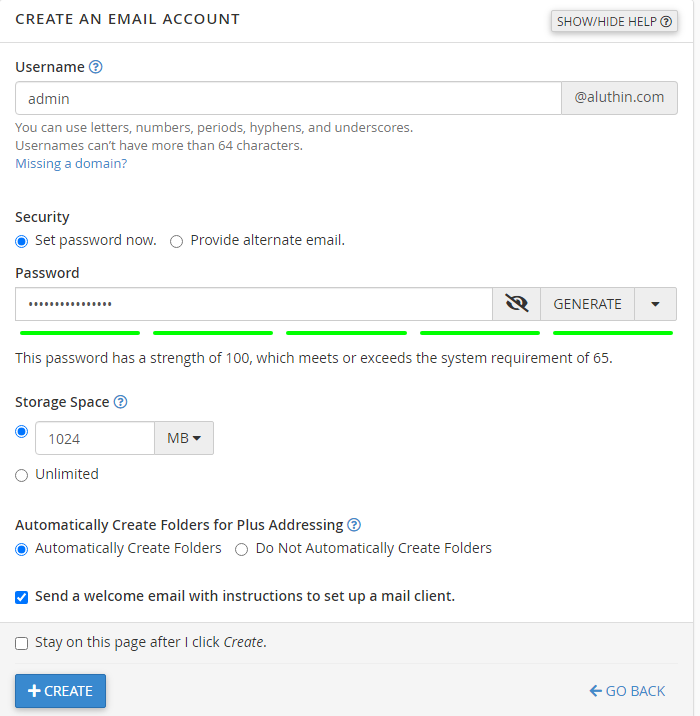 Your email account is created now!