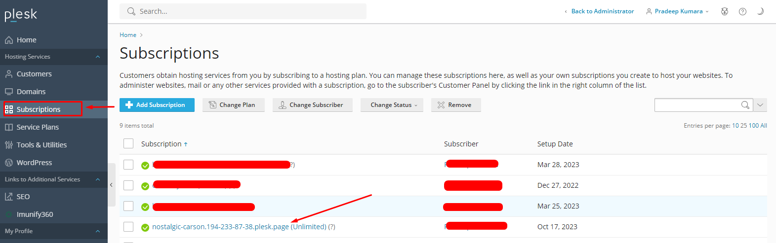 Step 2: Go to Subscriptions → Select the Domain you want to change