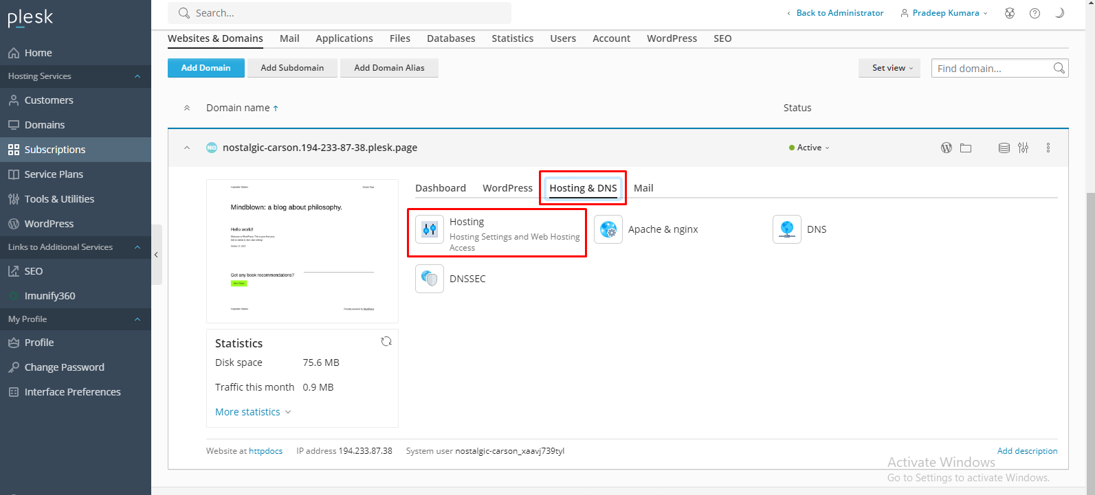 Step 3: Select Hosting & DNS → Hosting