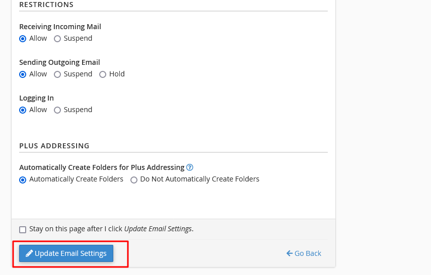 Step 5: Finally click the Update Email Settings button to update your email password