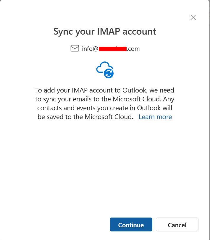 Step 5: Click Continue to begin syncing your email account