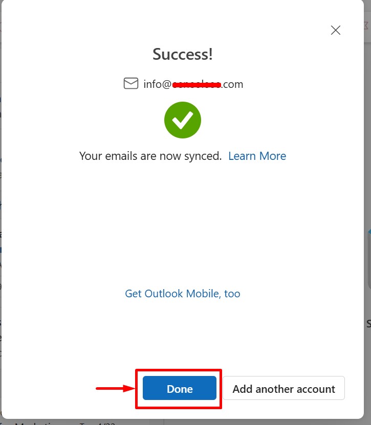 The configuration has been successfully completed. You can now access and use your email account without interruption.