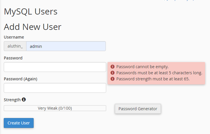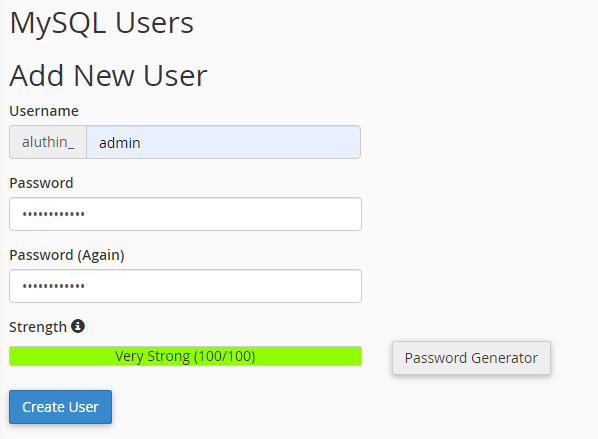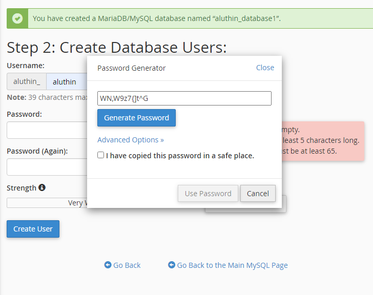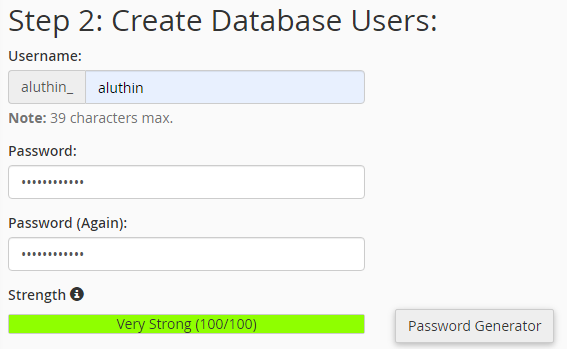 - Here, when creating the user generate a strong password and make sure to save it somewhere safe for future use.