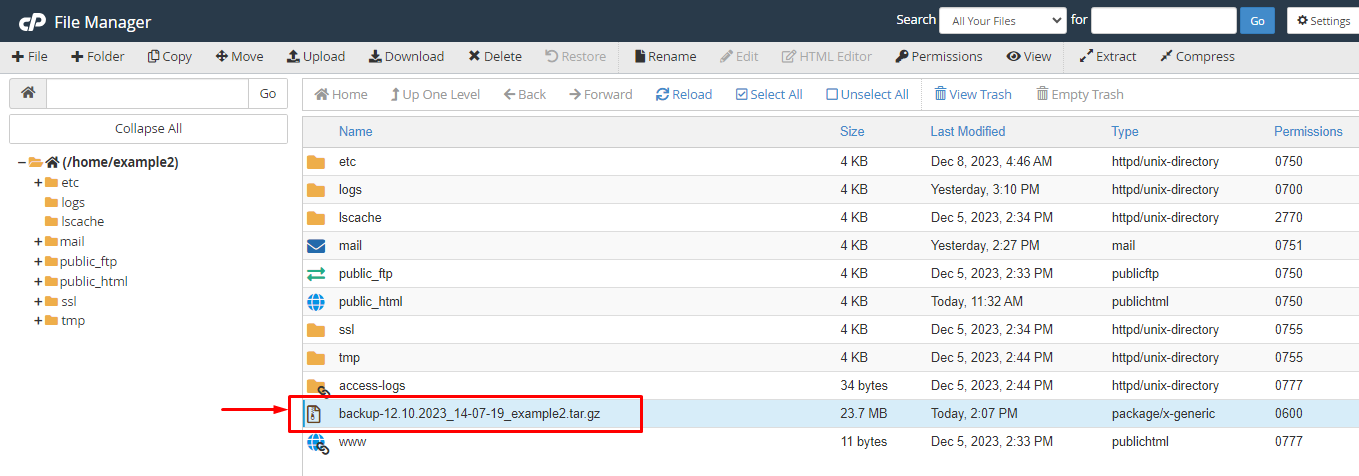Step 6: This will get a few moments and create a backup file inside your file manager