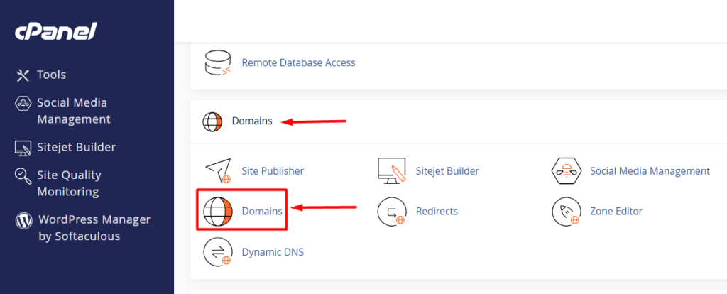 2. Scroll down to the Domains section. or Search Domains in the search tool. (click on the upper right-hand corner)