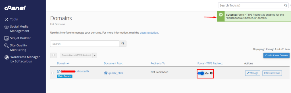3. Find the domain for which you want to enable the HTTPS redirect.