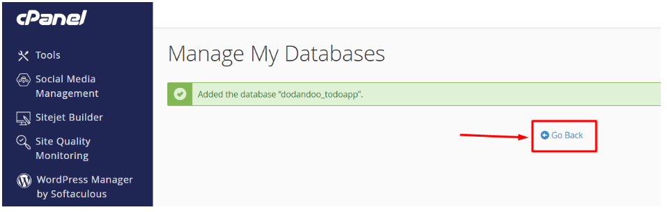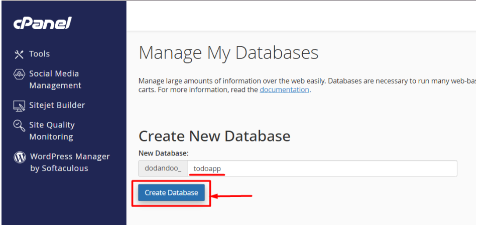 I. In cPanel, go to Manage My Databases and create a new database.