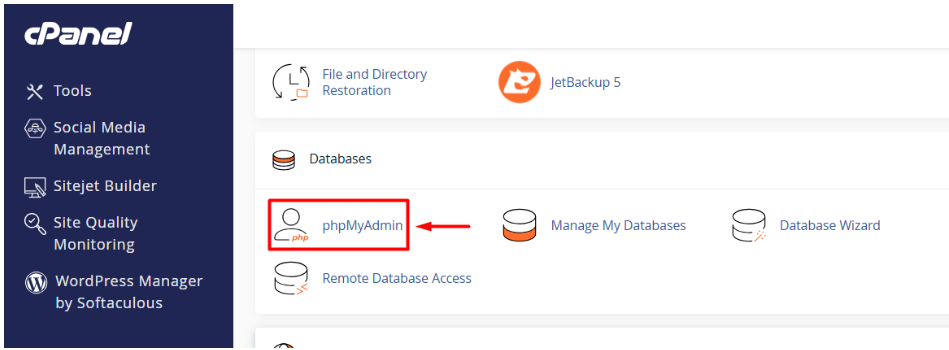 I. Go back to phpMyAdmin in cPanel.