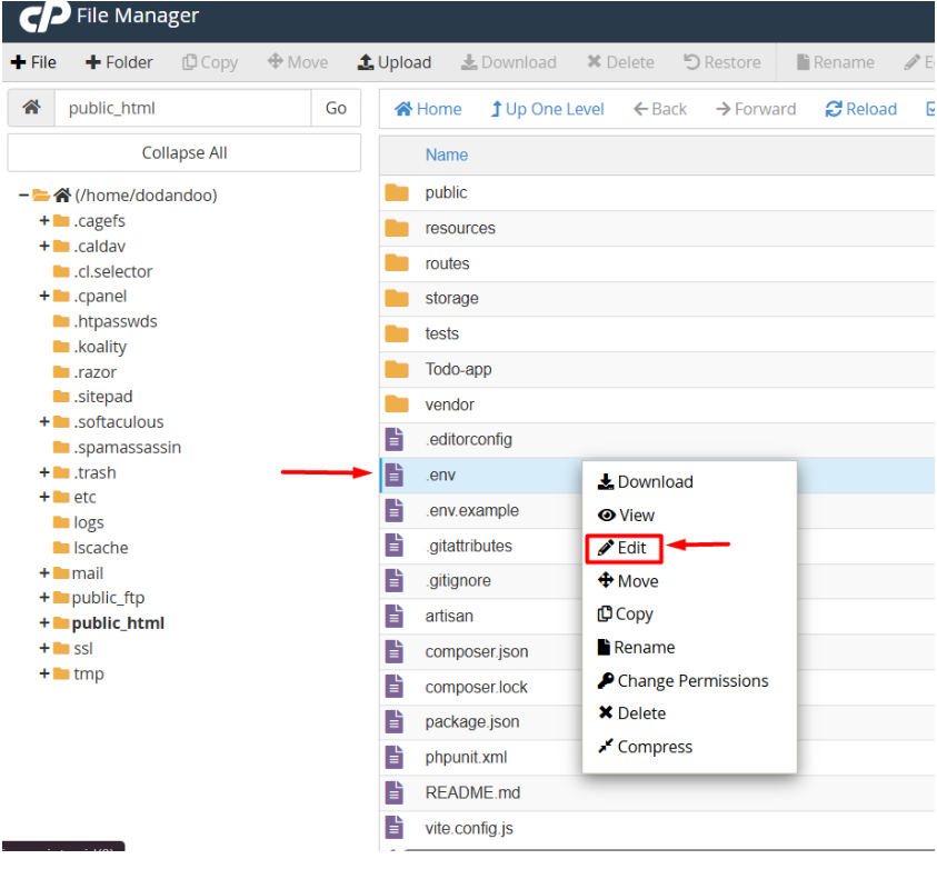 III. Right-click .env → Edit.
