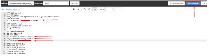 IV. Update the following lines with your actual database details and save Changes.