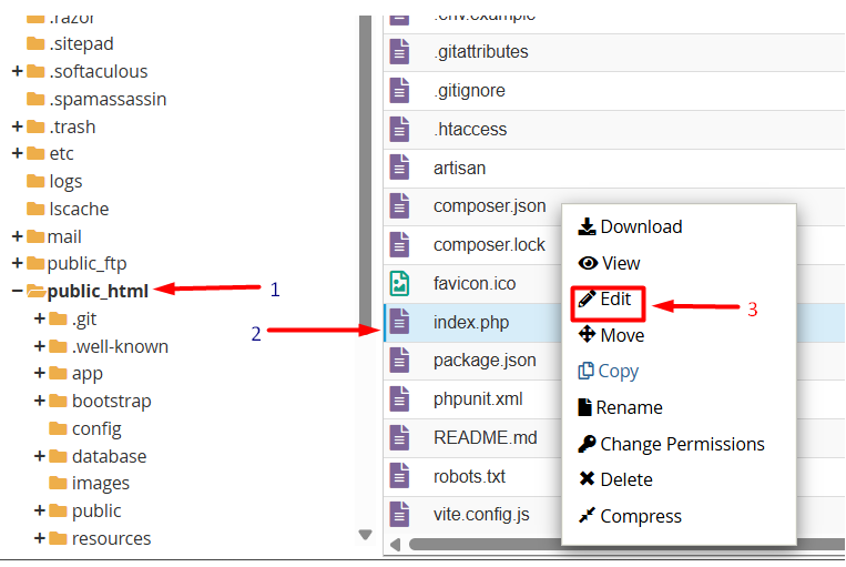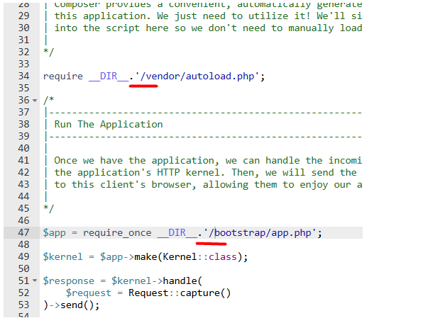II. Open the public/index.php file in your Laravel project directory