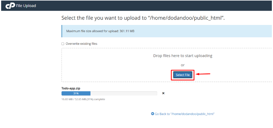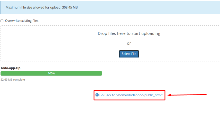 IV. After completing the upload, go back to the public_html File.