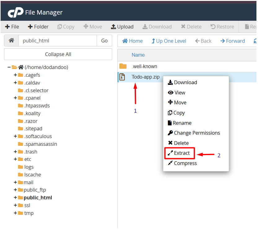 VI. After going to the unzipped file, select all the files and move the public_html file directory.