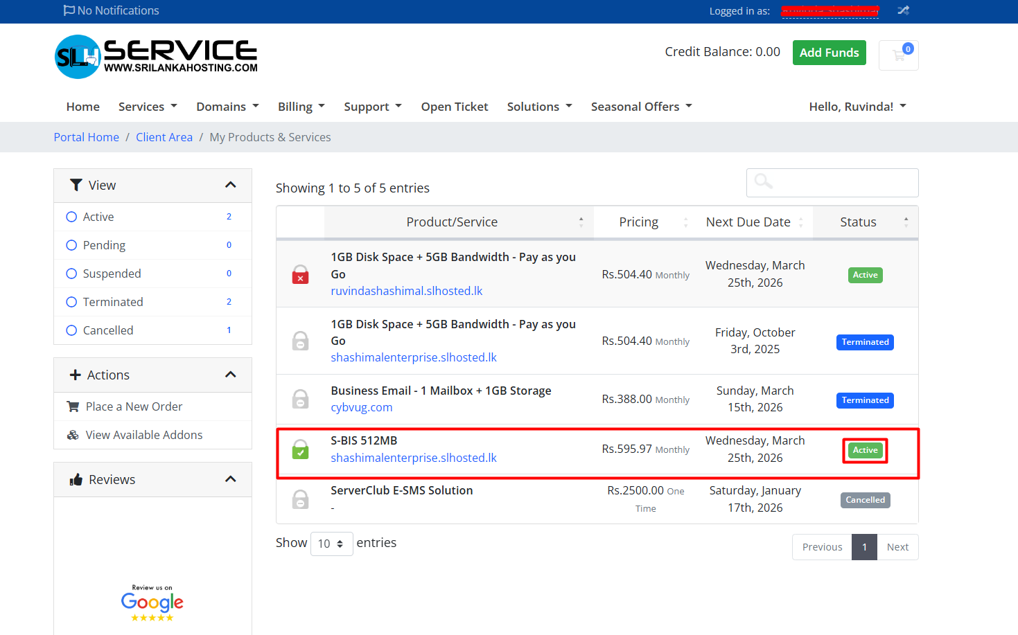 Now Click on the SERVICES. Then you will see your active services.