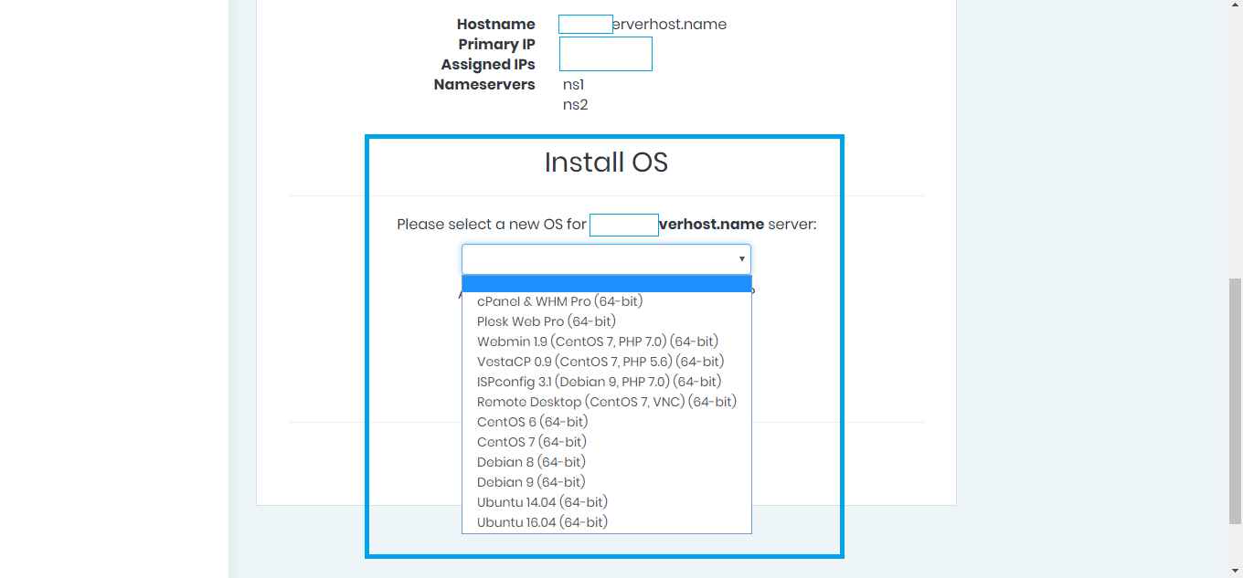 Install OS: Using this option you can install any available OS to your VPS within one click.