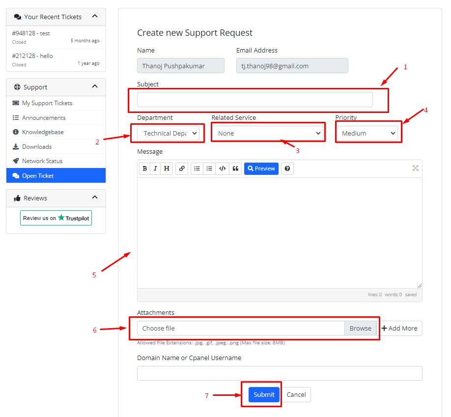 - If you have any technical problem open a support ticket with explaining the problem. you can even upload Screnshot for exaplain the problem.