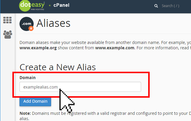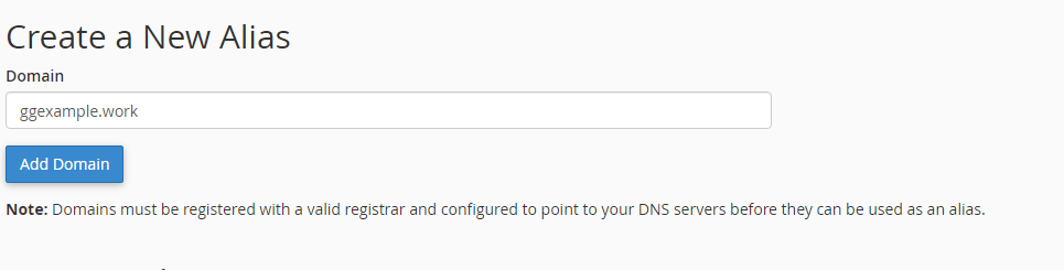 Step 3: In the Create a New Alias section, enter the alias domain name in the Domain field, then click the Add Domain button.