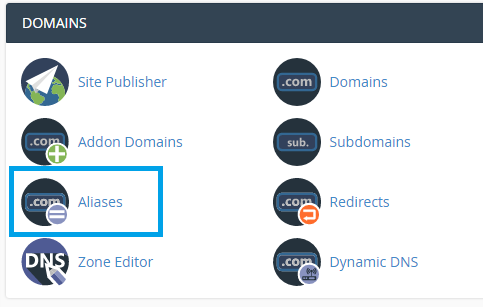 Step 2: In the Domains section, click the Aliases link or icon.