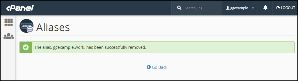 - When the domain alias has been removed you will see a success message.