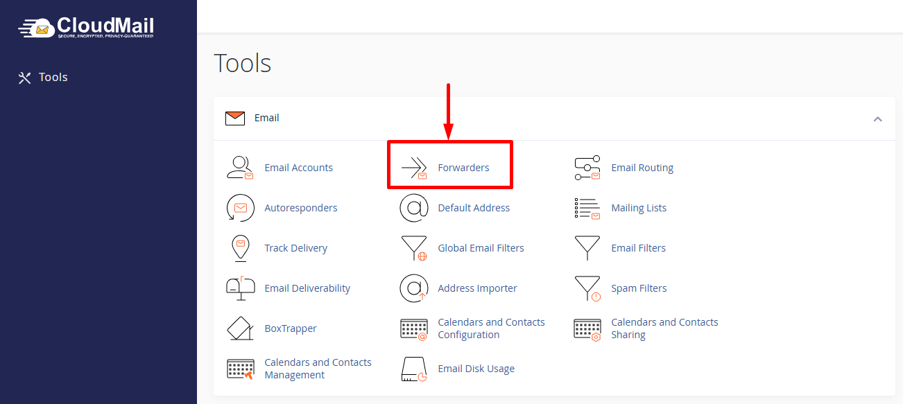 Step 2: In the cPanel dashboard, find the Email section, Click on Forwarders