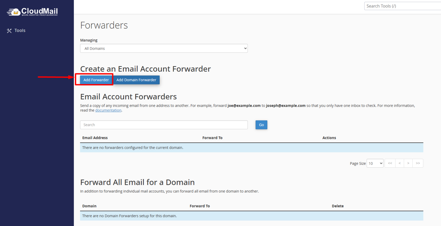 Step 3: Click the Add Forwarder button