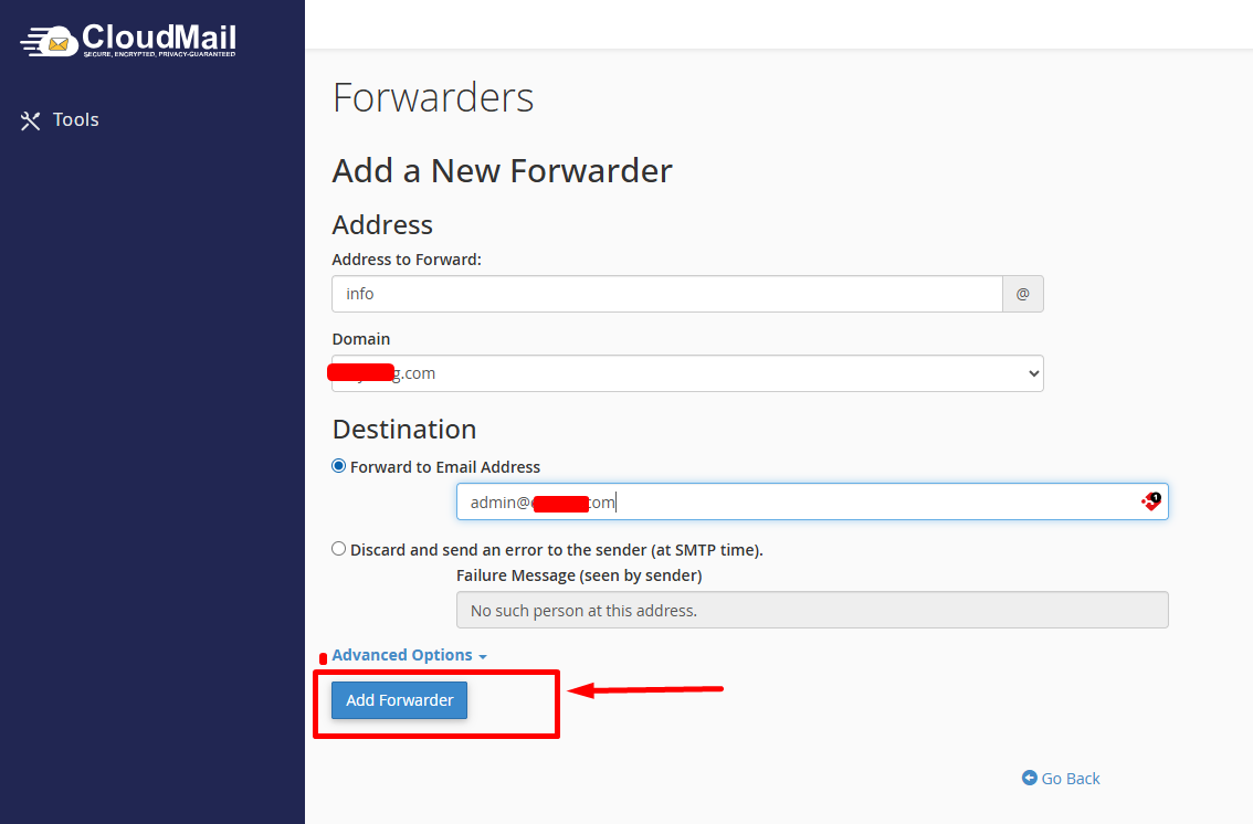 Step 4: Enter Forwarding Details