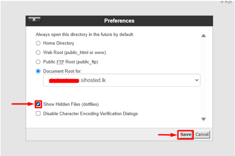 3. A pop-up will appear — check the box that says: (Show Hidden Files (dotfiles))