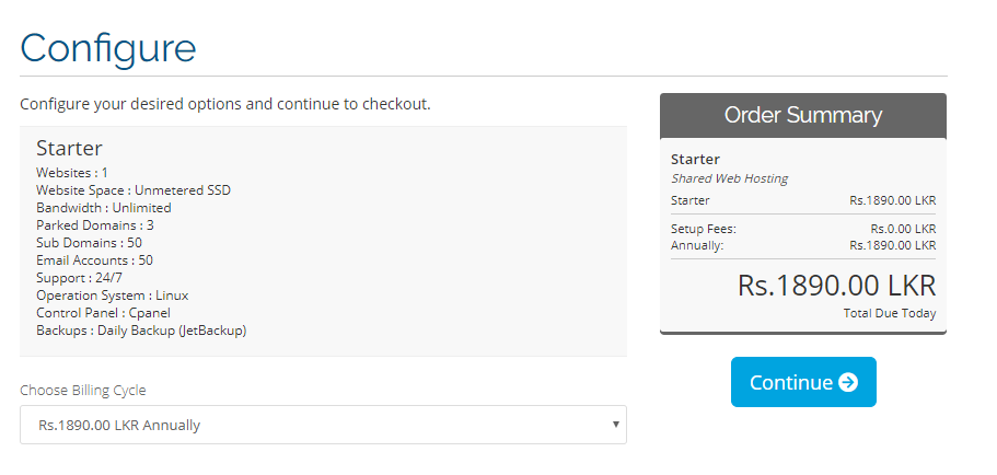 Step 1: Firstly Configure your Service & Click on Continue Button