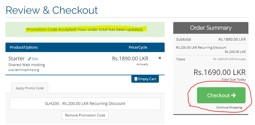 If you entered a correct promo code, It will apply & Reduce your checkout amount according to Coupon code discount.