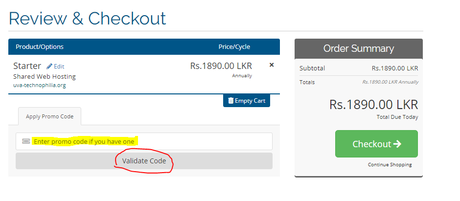 Step 3: Now Enter your Coupon ( Promo Code ) & Click on Validate Code