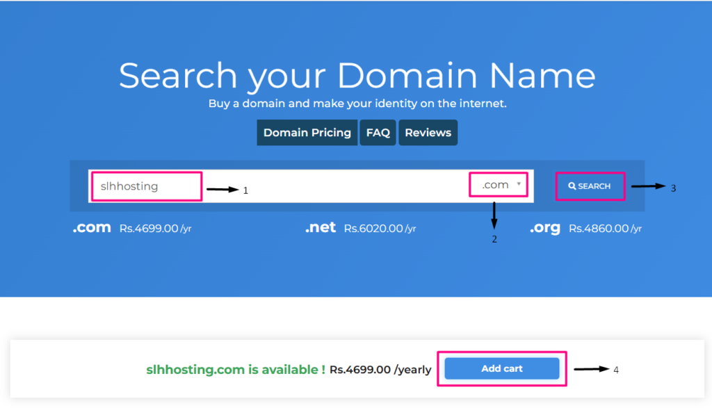 4. If the domain name is available you can add it cart by clicking “Add cart“.