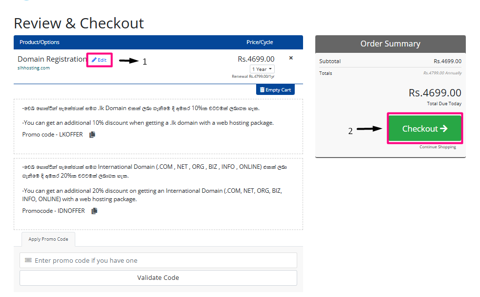 2. If you want to buy only domain, you can put the tick to Domain only check box.