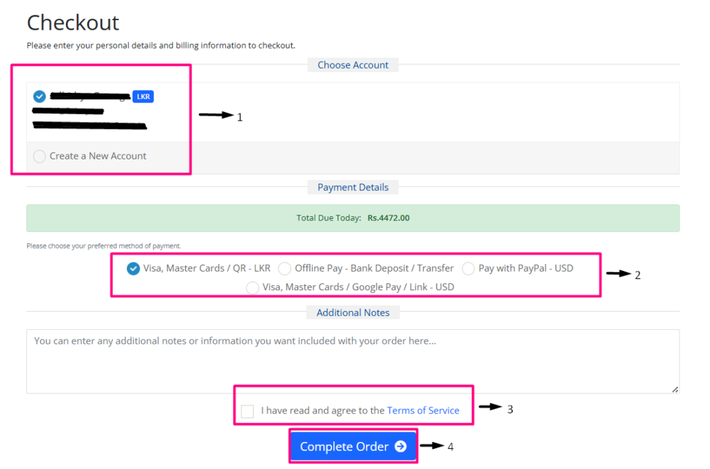 - Click Complete Order button.