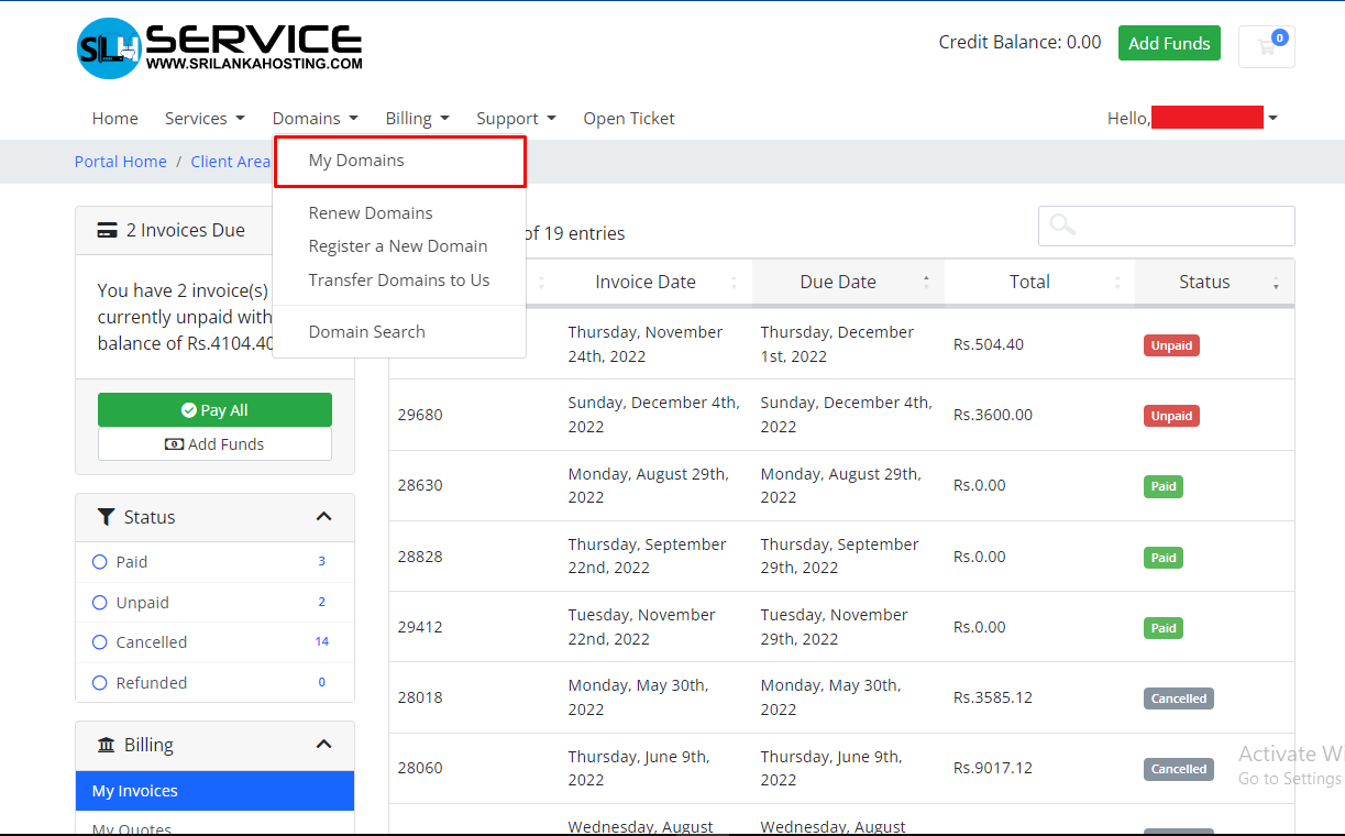 Step 6: Click My Domains