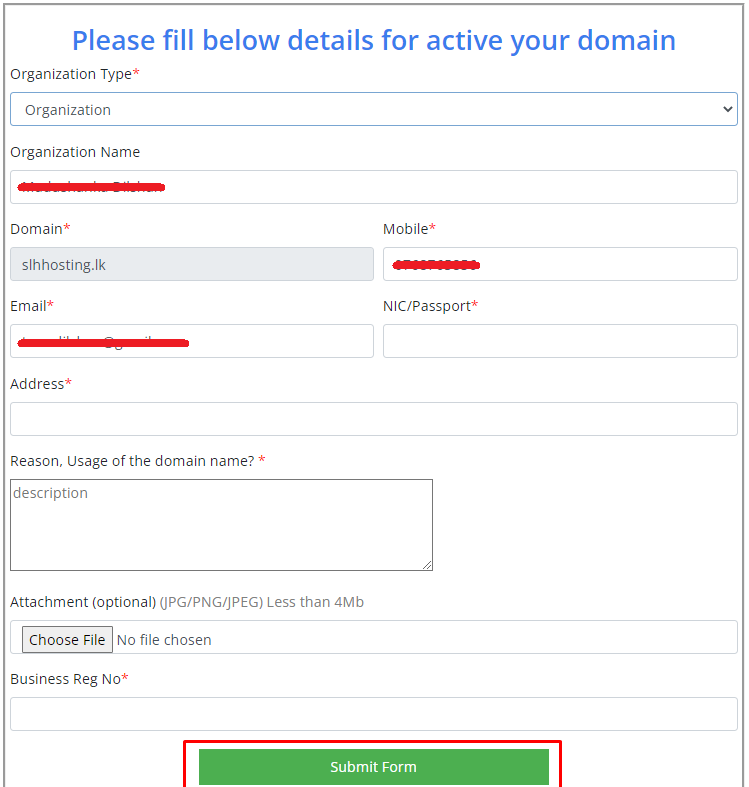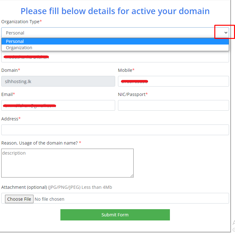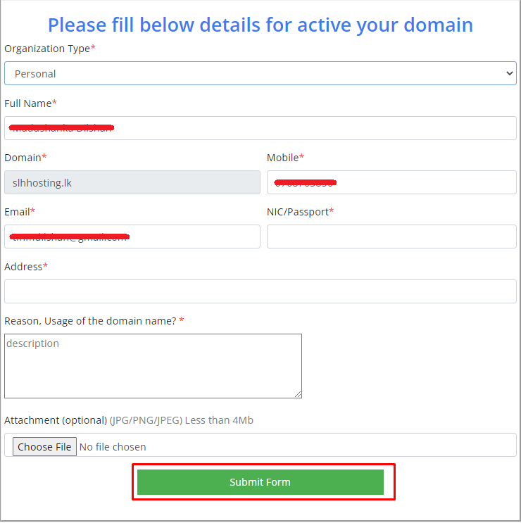 - Form overview for personal domains.