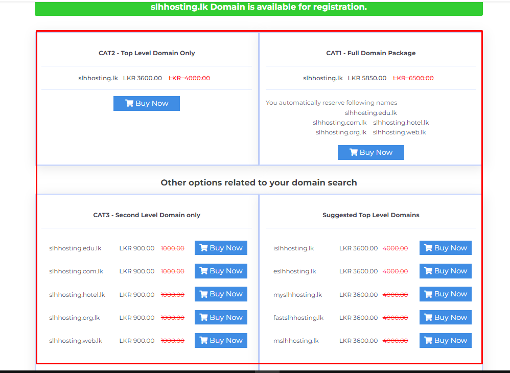Choose your domain type and click Buy Now button.