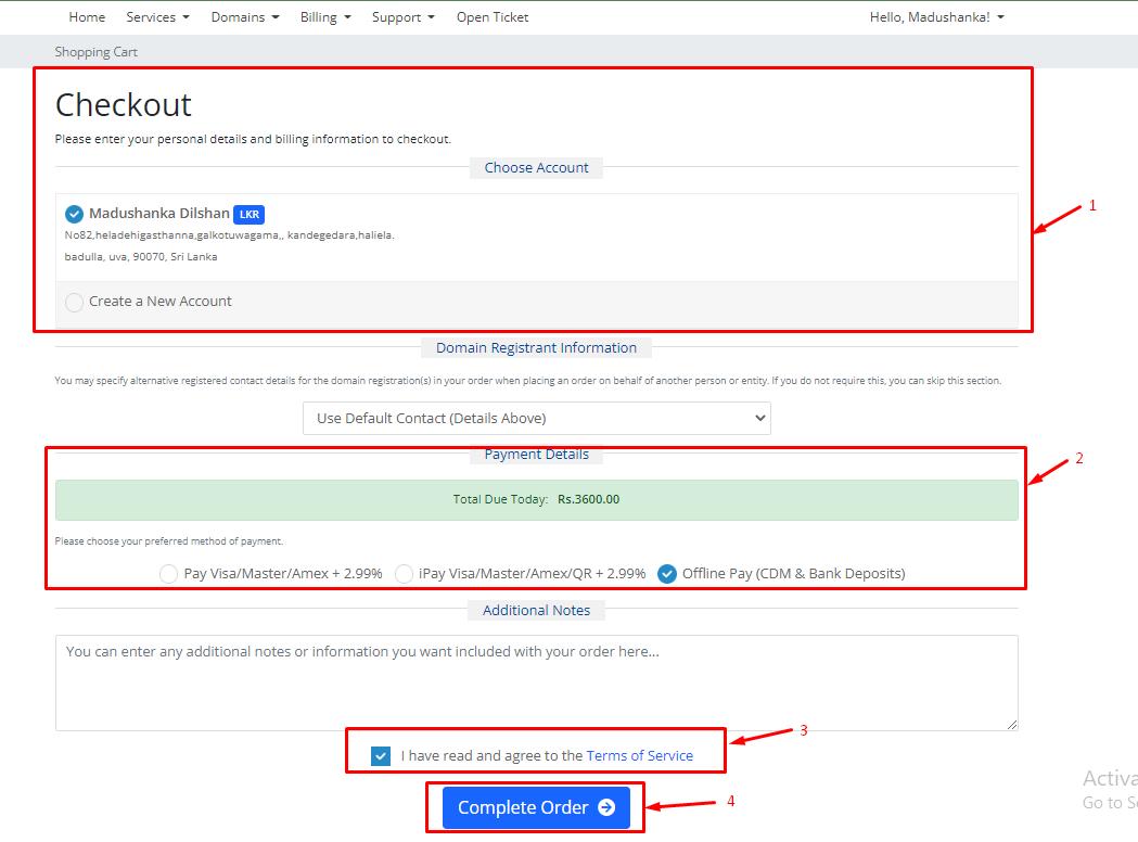 4. Click Complete Order button.