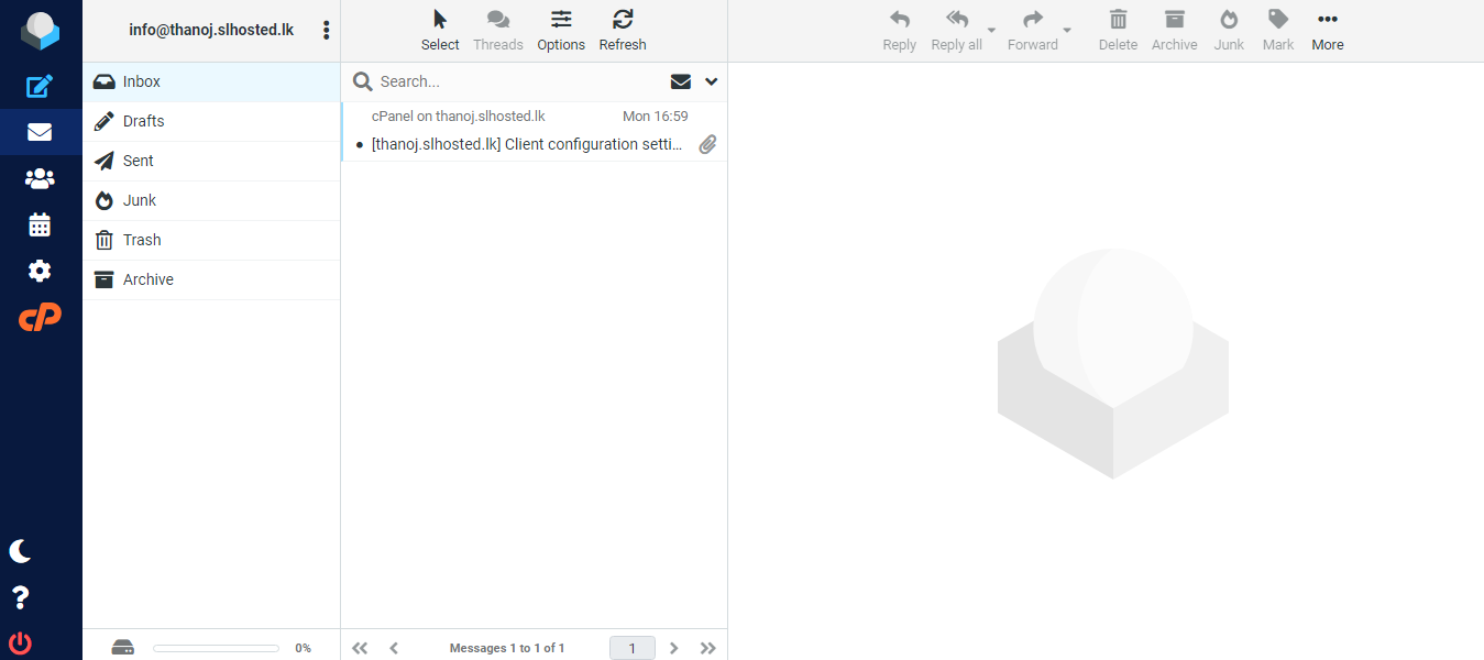 After that, you are correctly logged in to webmail as shown in the interface below