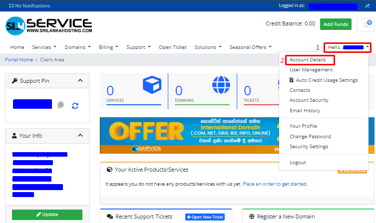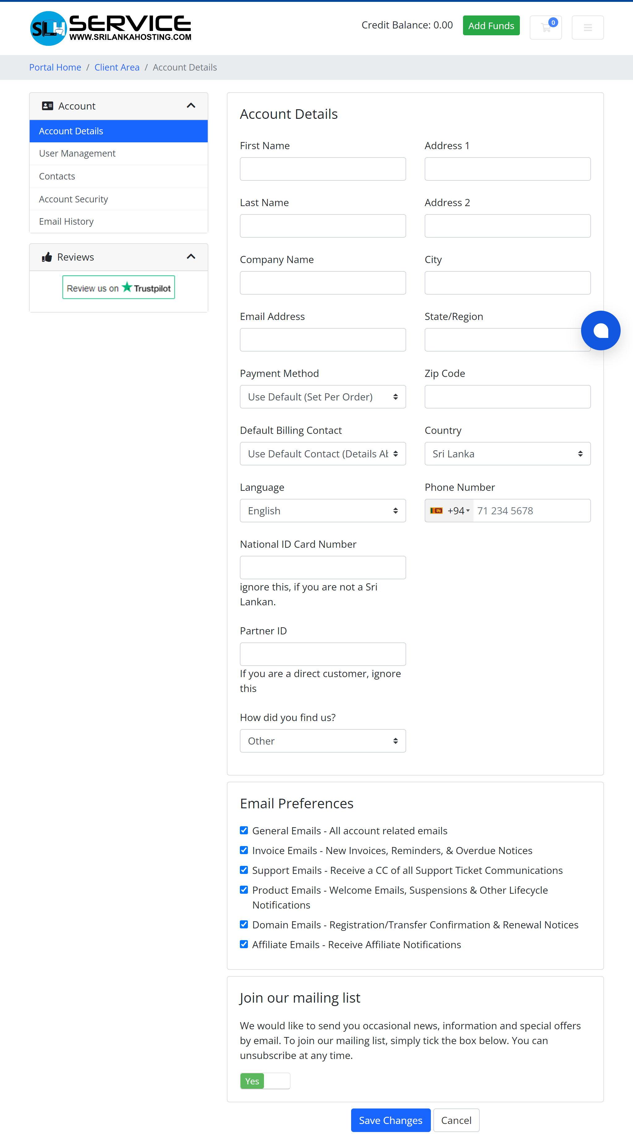 Regularly managing your Account Details in the SriLanka Hosting client area ensures your information remains accurate and secure. By keeping your details up-to-date, you can enjoy uninterrupted communication and seamless access to your hosting services, helping you stay in control of your account.