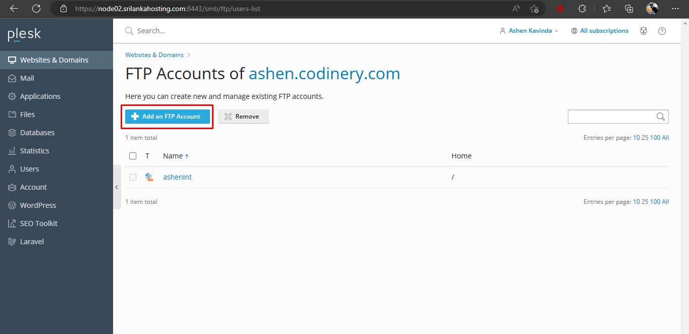 - Click the Add FTP Account button.